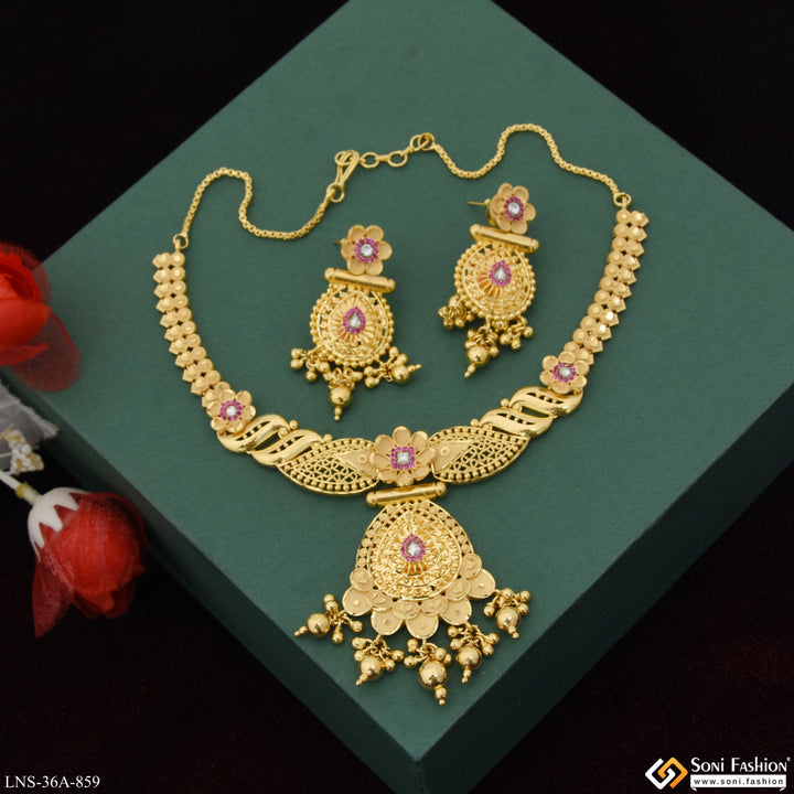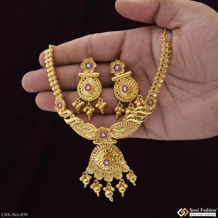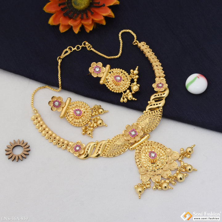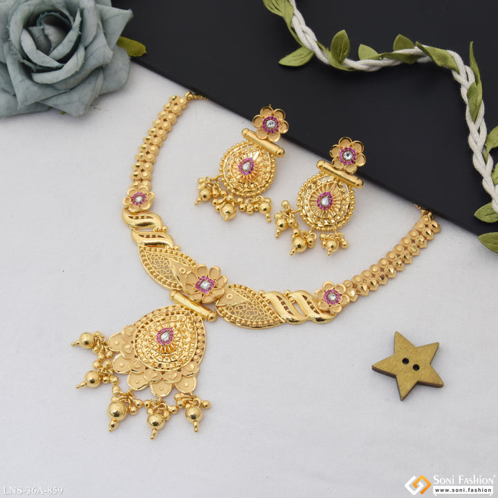 1 Gram Gold Plated Latest Design Necklace Set for Women - Style A859