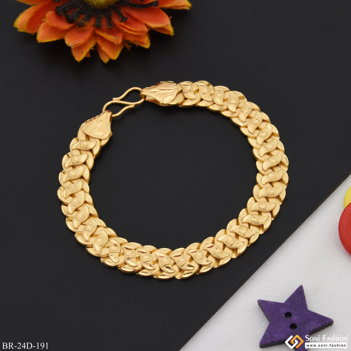 1 Gram Gold Plated Leaf Awesome Design Pokal Bracelet for Men - Style D191