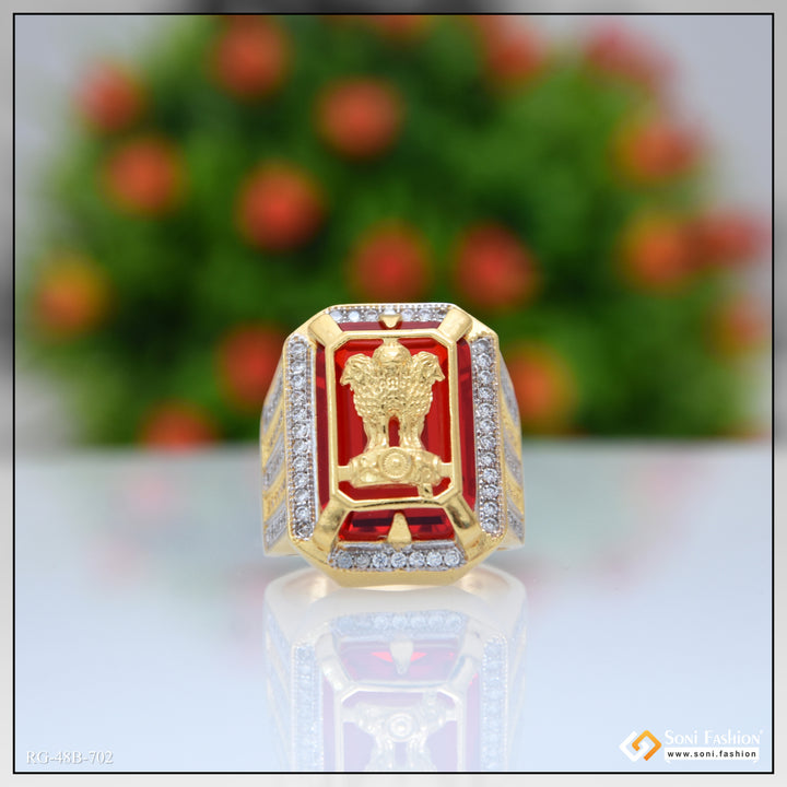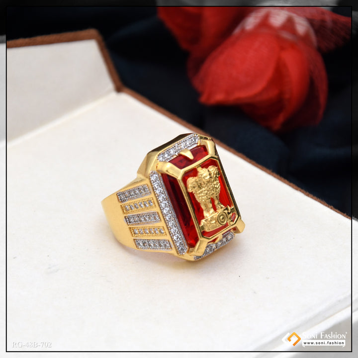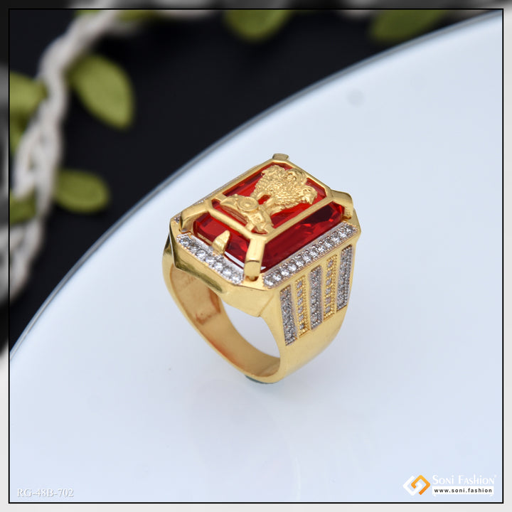 1 Gram Gold Plated Mudra On Red Stone Trending Design Ring for Men - Style B702