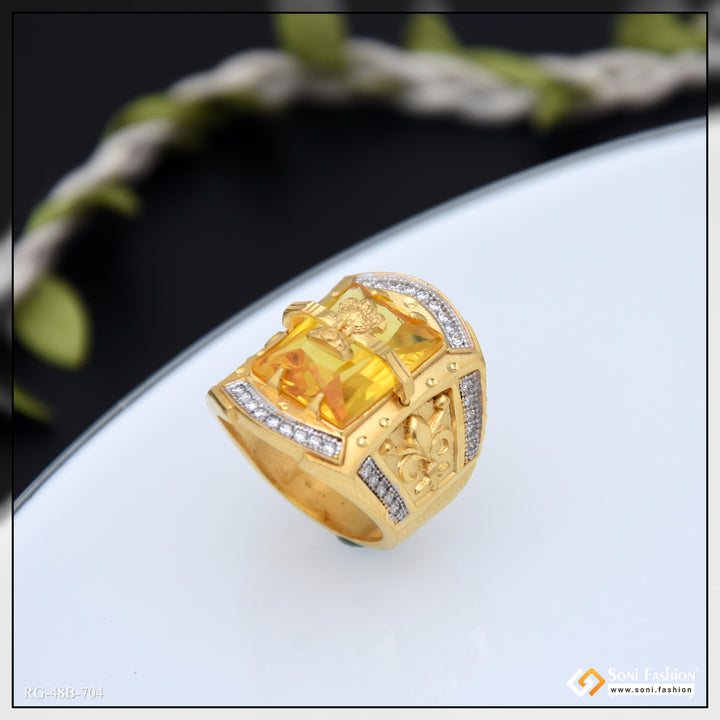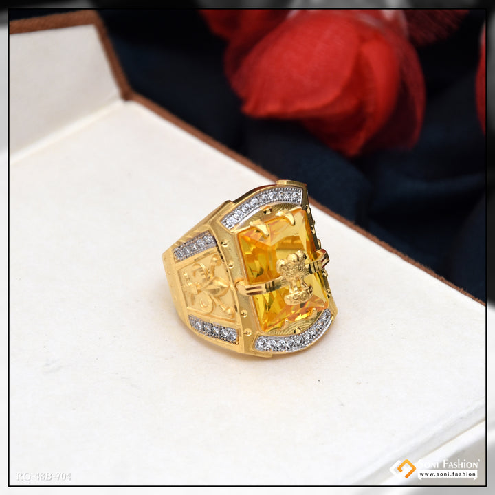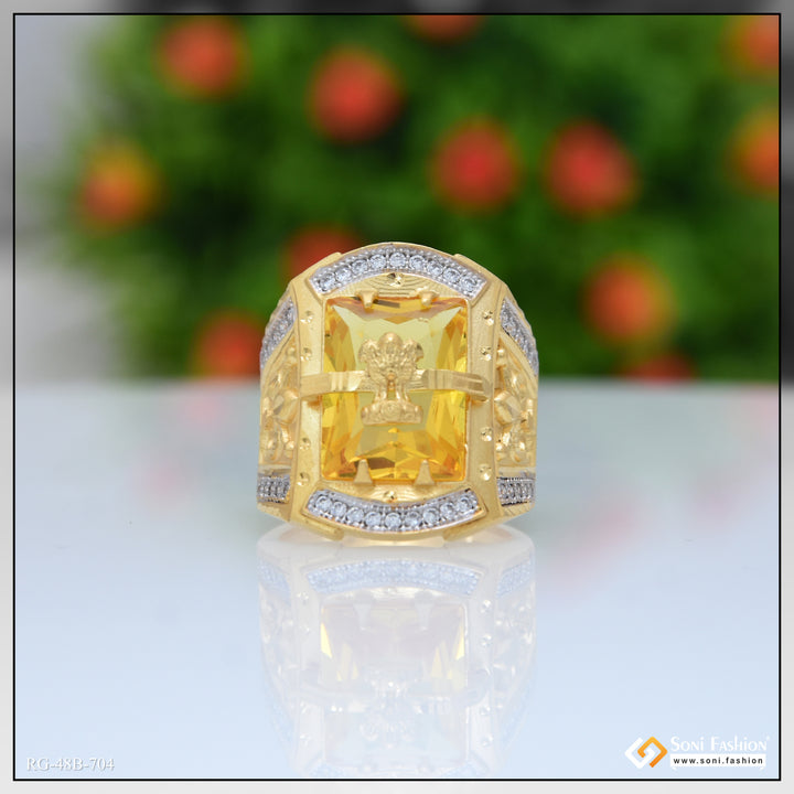 1 Gram Gold Plated Mudra On Yellow Stone Amazing Design Ring for Men - Style B704