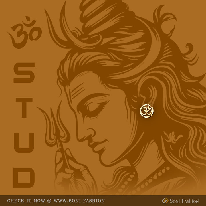 1 Gram Gold Plated Om In Circle Stud Earring For Men (1 Pc) - Style A055