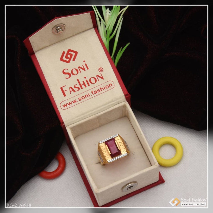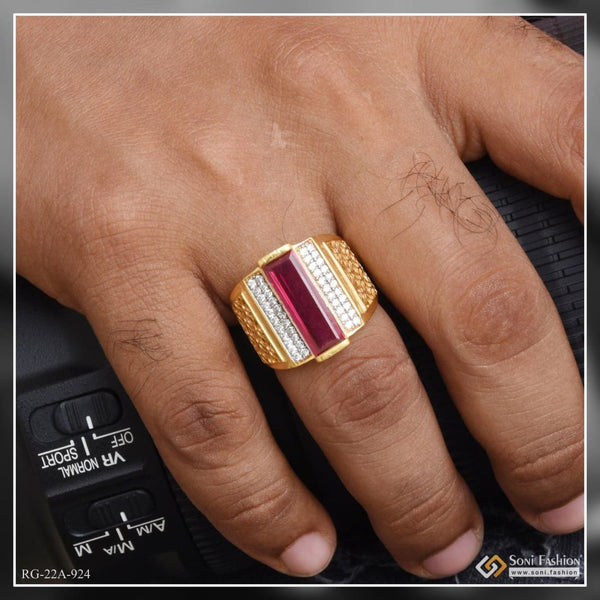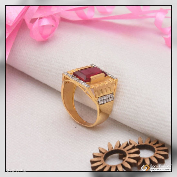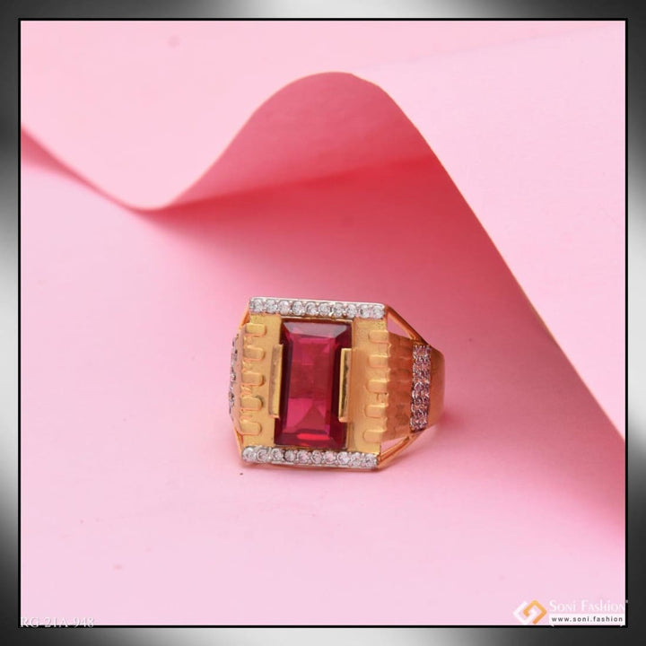 This stunning 1 Gram Gold Plated Pink Stone With Diamond Delicate Design Ring is a timeless piece of jewelry to add to your wardrobe. Its textured brass base features rhodium plating that is offset by a miligram gold plating that adds a matt finish. This ring is adorned with pink stones and diamond accents that will make any groom stand out.
