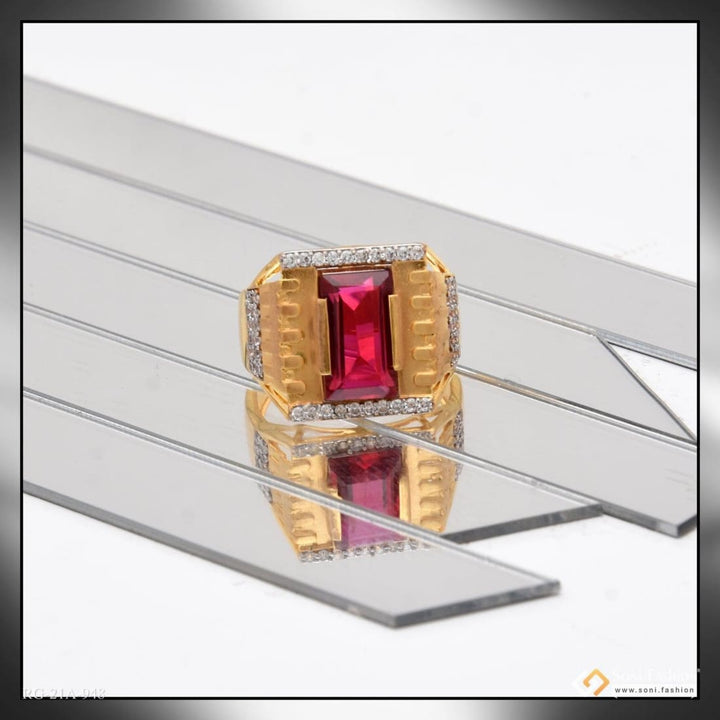 1 Gram Gold Plated Pink Stone With Diamond Delicate Design Ring - Style A948
