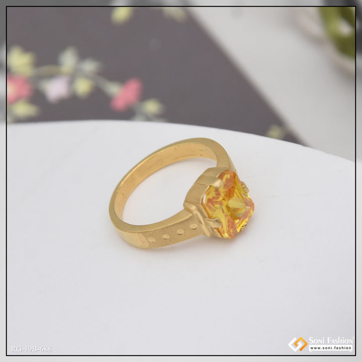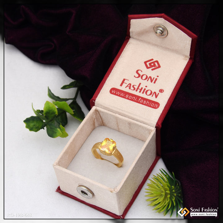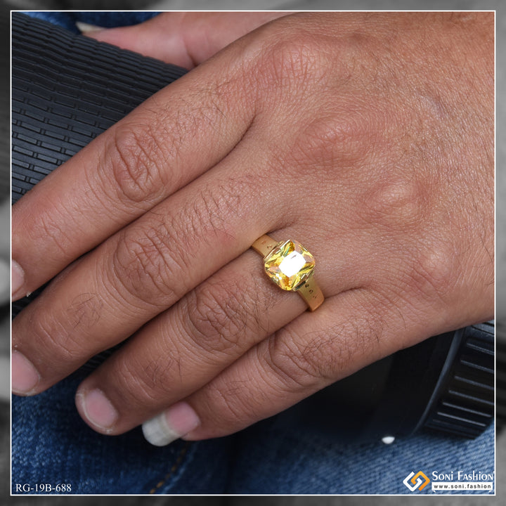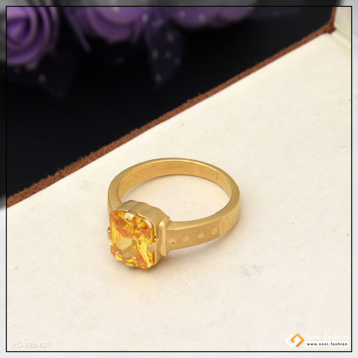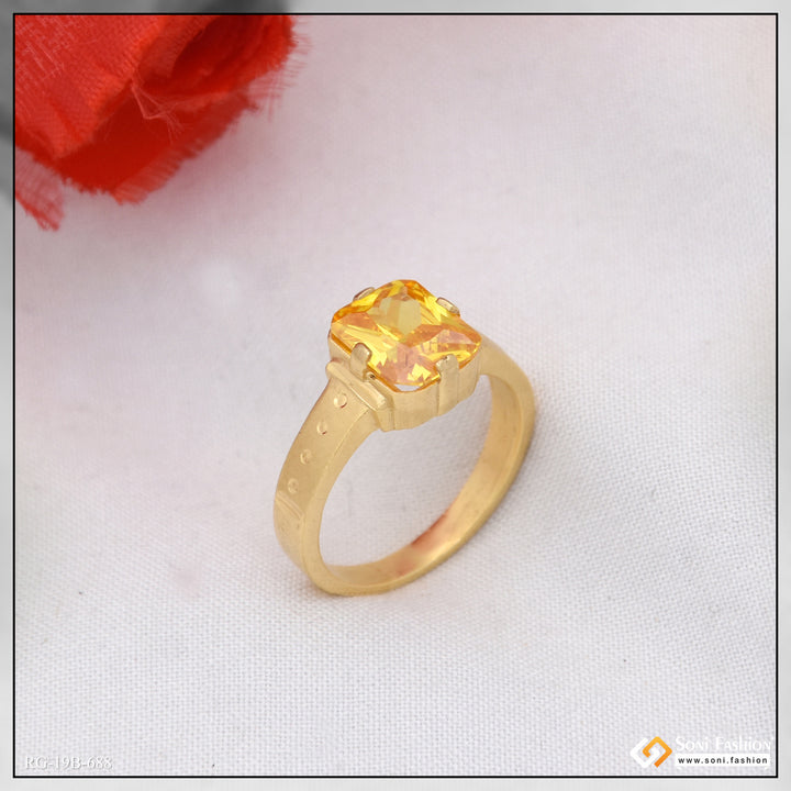 1 Gram Gold Plated Popular Design Yellow Stone Ring for Men - Style B688