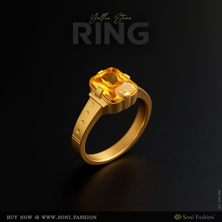This 1 Gram Gold Plated Men's Ring features a striking yellow stone set in a shining rectangular design. Crafted from brass with a miligram gold finish, it offers a matte golden look that adds subtle elegance to any outfit. Durable and stylish, this ring is perfect for everyday wear or special occasions.