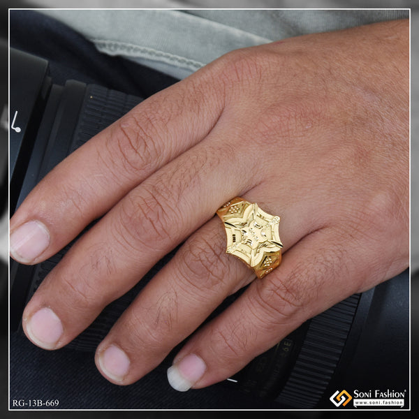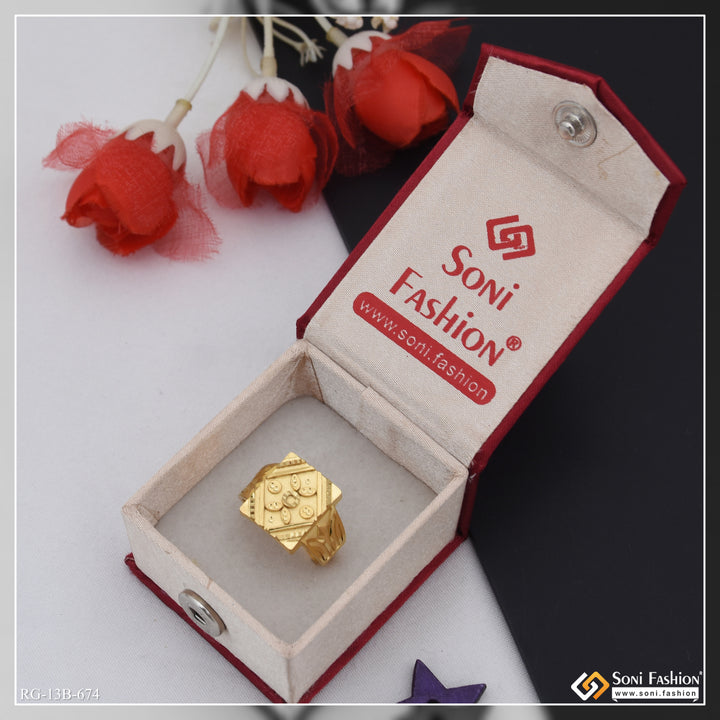 1 Gram Gold Plated Prominent Design Ring for Men - Style B674
