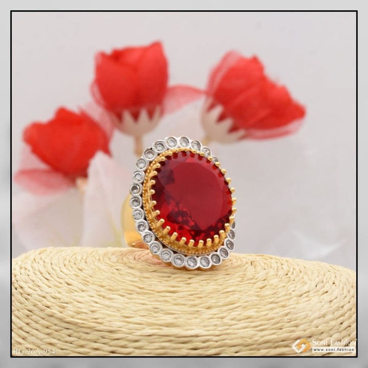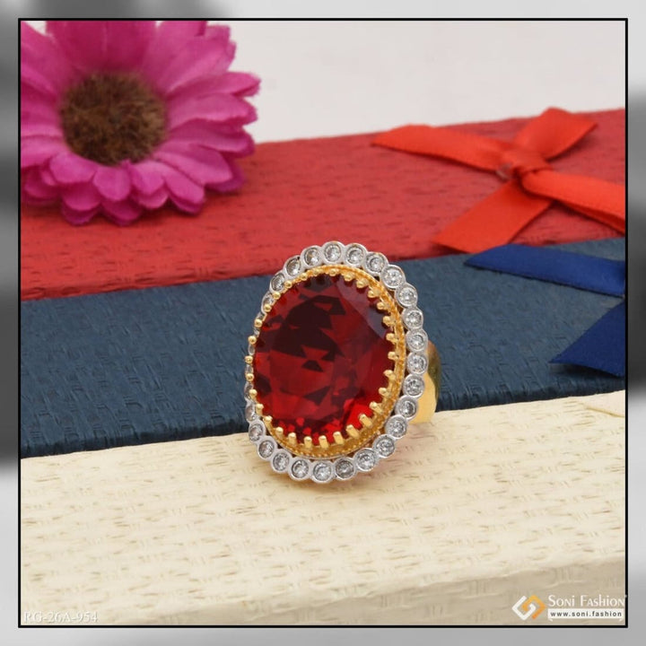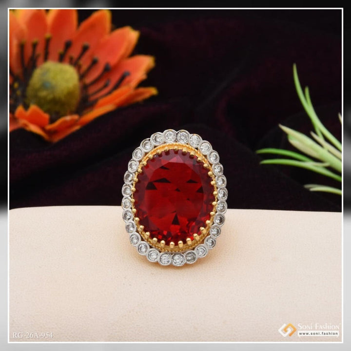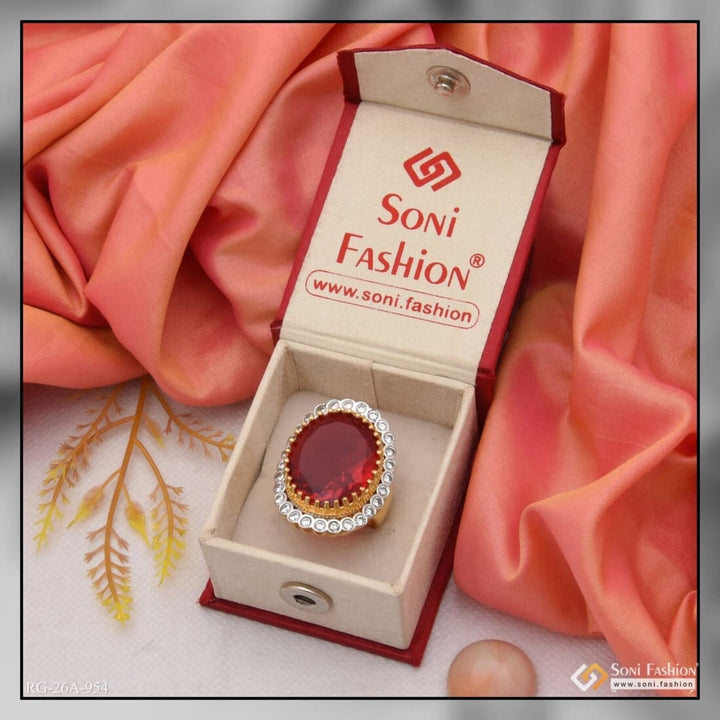 1 Gram Gold Forming Red Colour with Diamond Gold Plated Ring for Men - Style A954