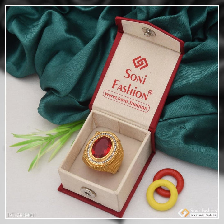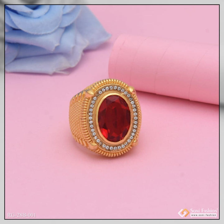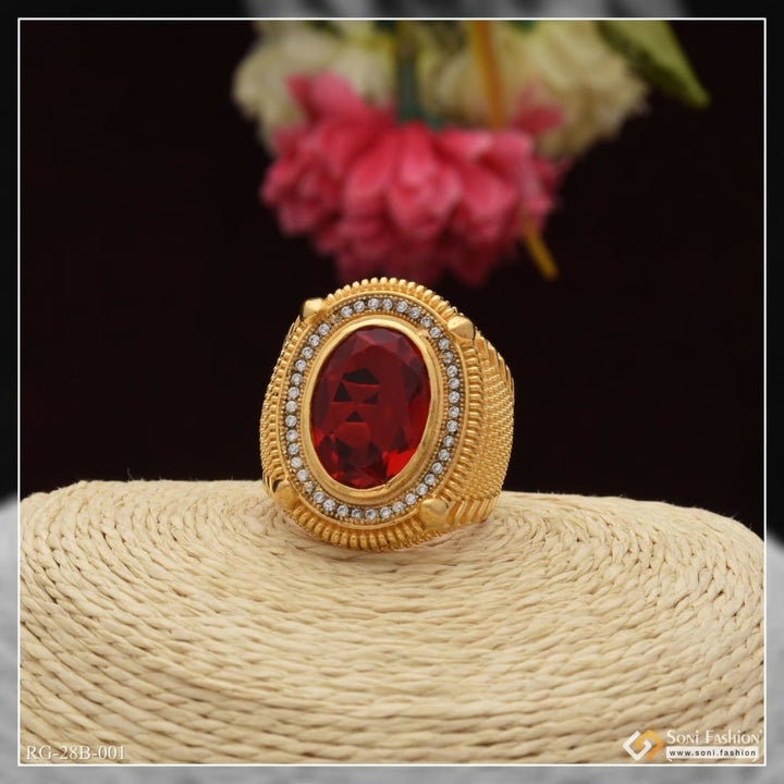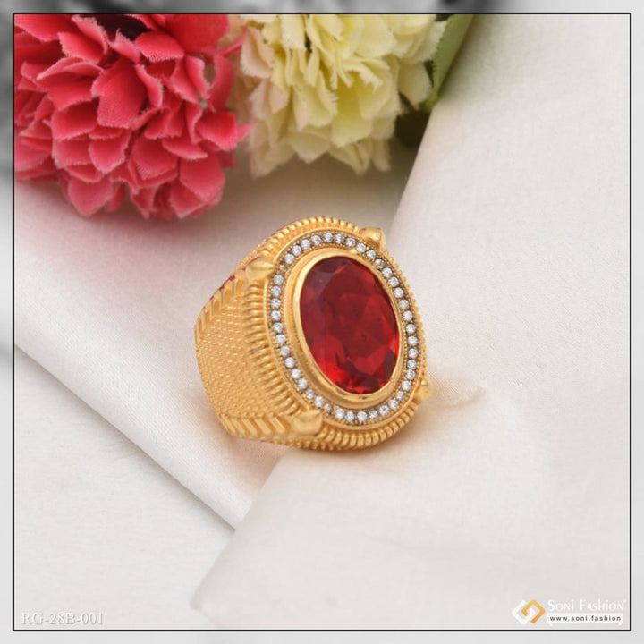 1 Gram Gold Forming Red Stone Streamlined Design Superior Quality Ring - Style B001