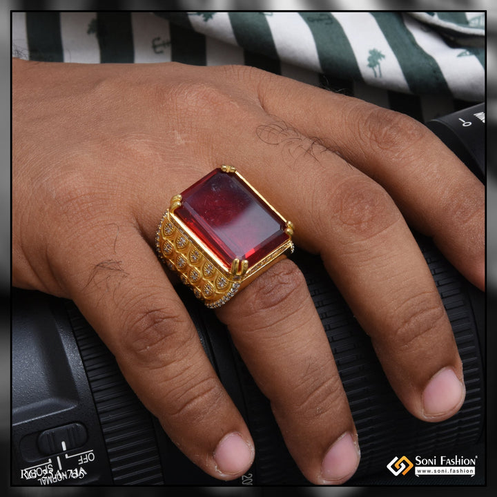 1 Gram Gold Plated- Red Stone with Diamond Gorgeous Design Ring - Style A735