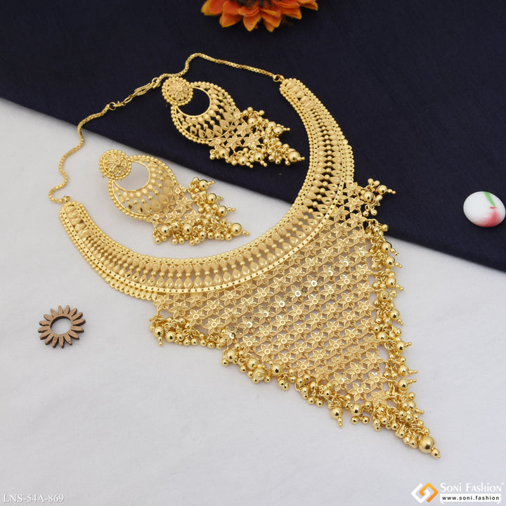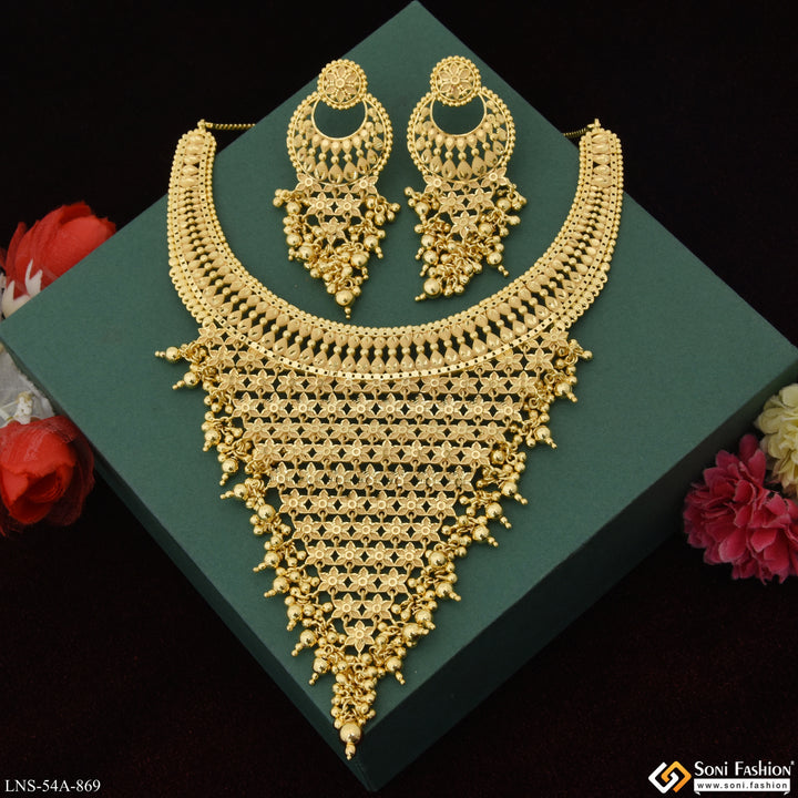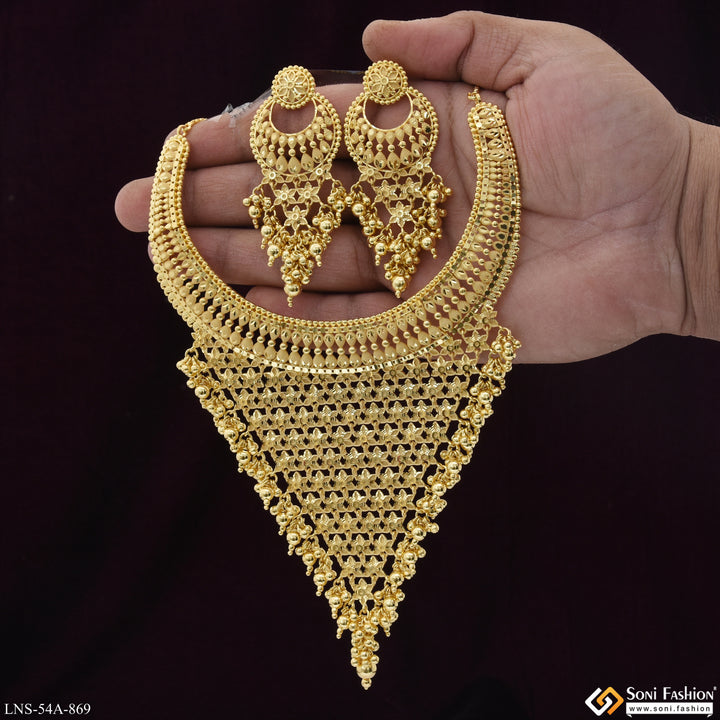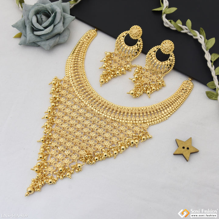 1 Gram Gold Plated Stunning Design Necklace Set for Women - Style A869