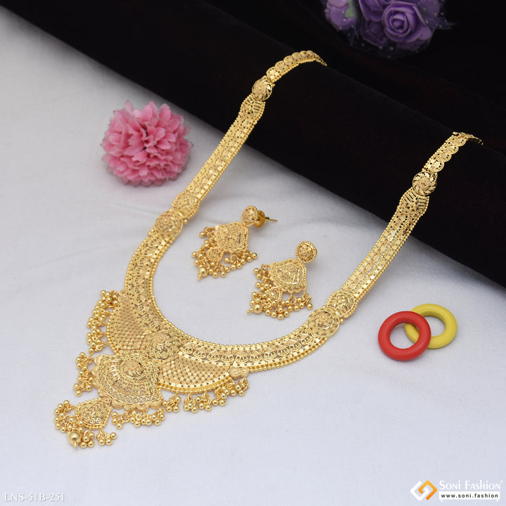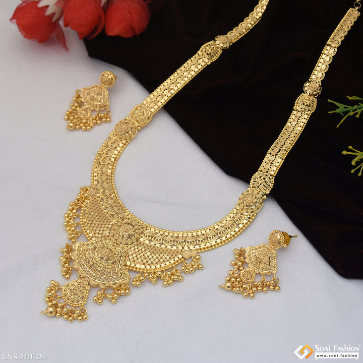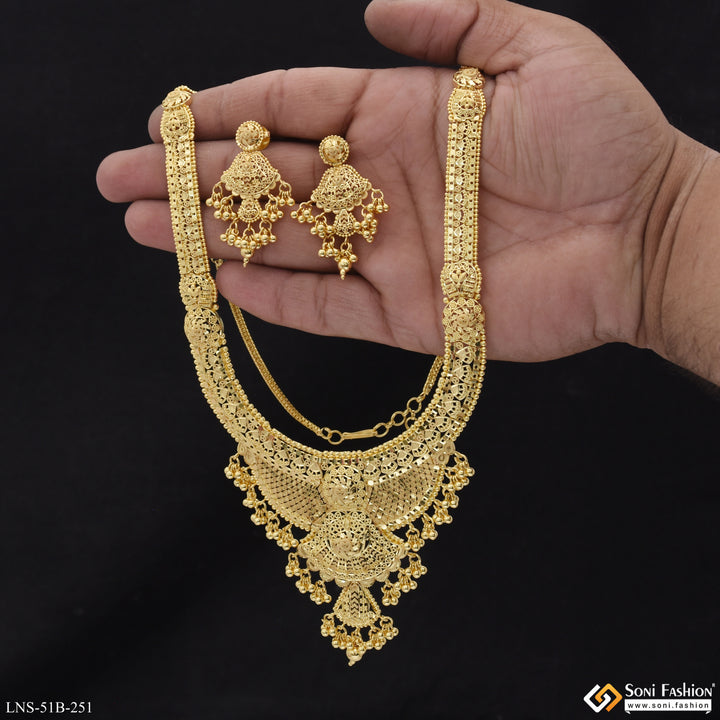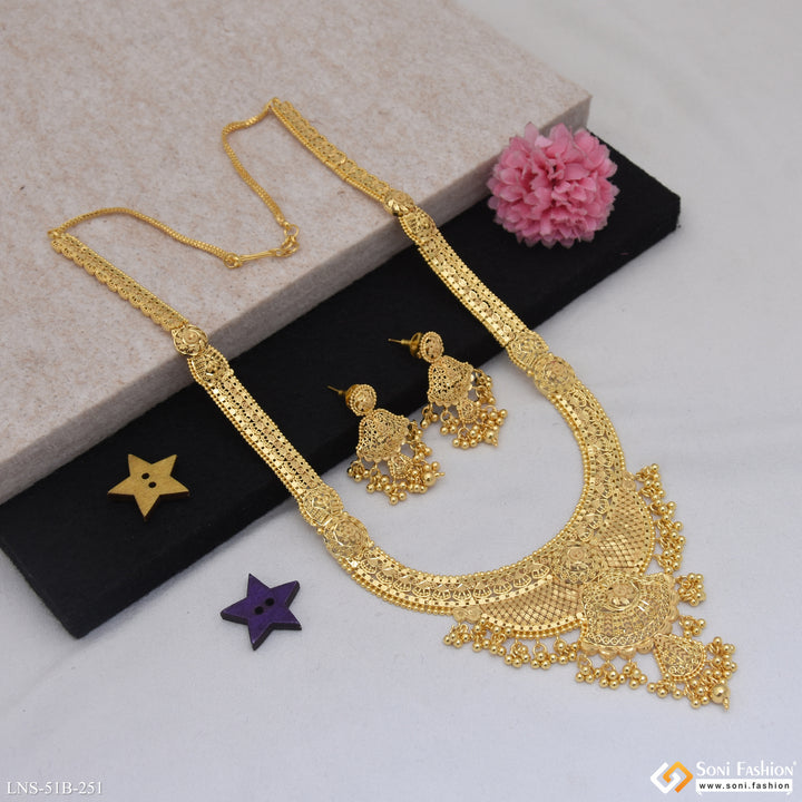 1 Gram Gold Plated Stunning Design Rani Haar Necklace Set for Women - Style B251