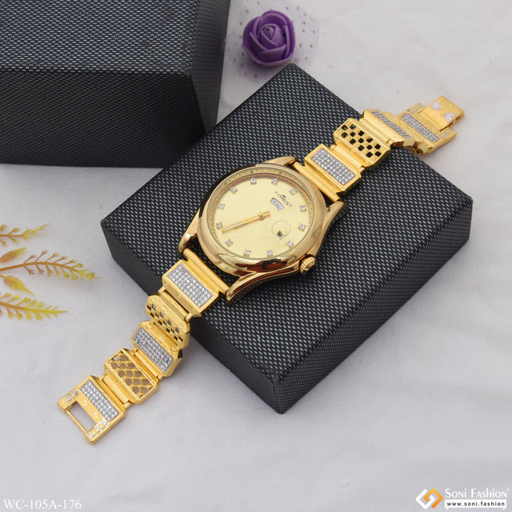 1 Gram Gold Plated Stunning Design Superior Quality Watch for Men - Style A176