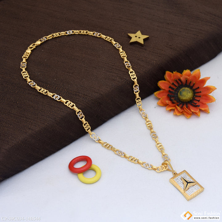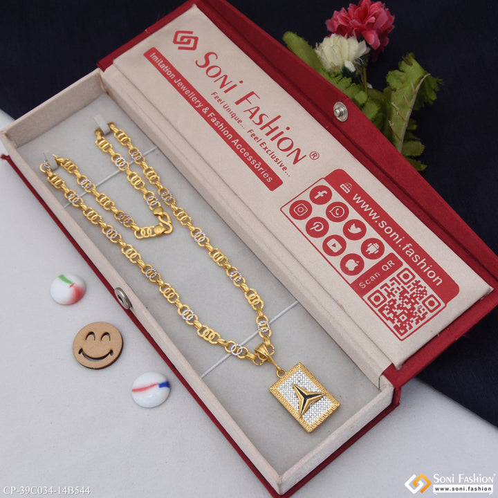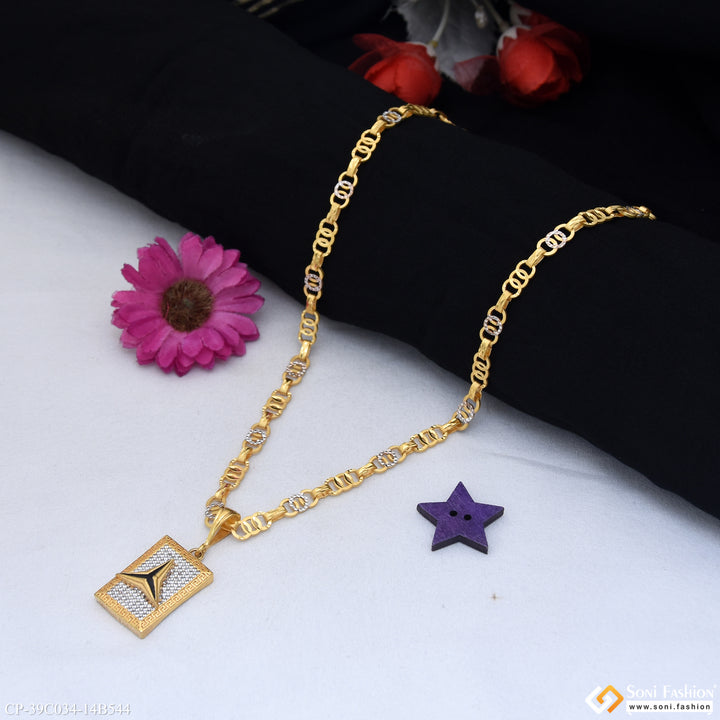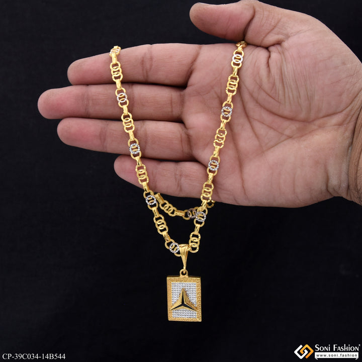 1 Gram Gold Plated Triangle Latest Design Pendant With Chain for Men (CP-C034-B544)