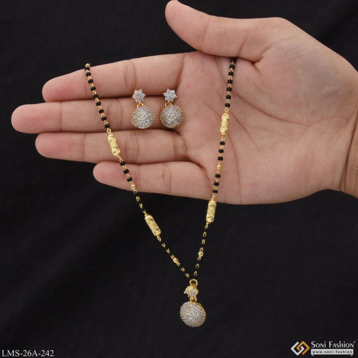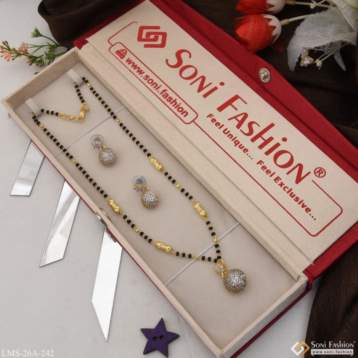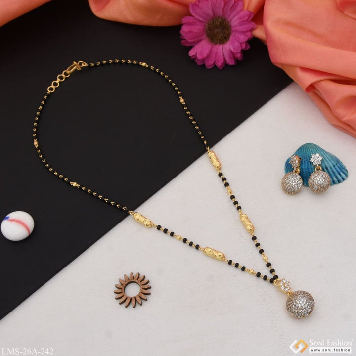 1 Gram Gold Plated With Diamond Chic Design Mangalsutra Set For Women - Style A242