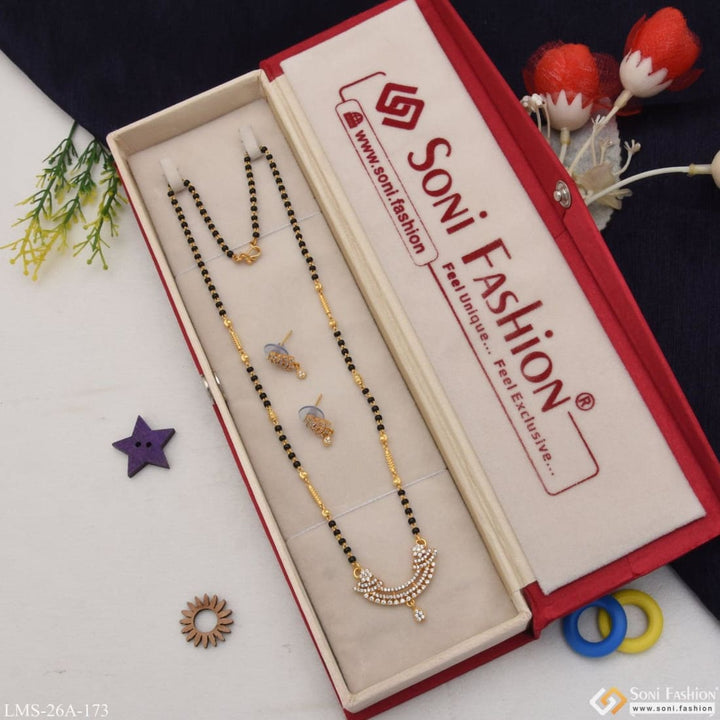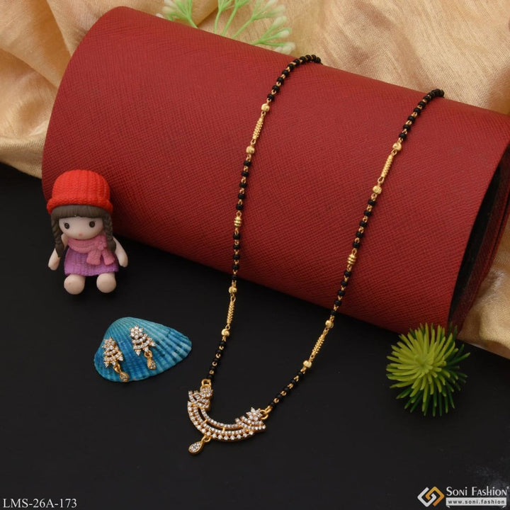1 Gram Gold Plated With Diamond Cool Design Mangalsutra Set For Women - Style A173