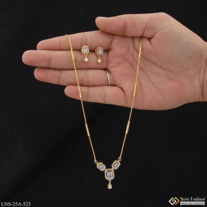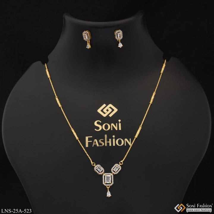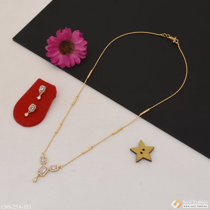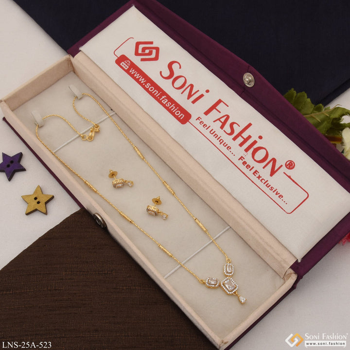 1 Gram Gold Plated with Diamond Fancy Design Necklace Set for Lady - Style A523