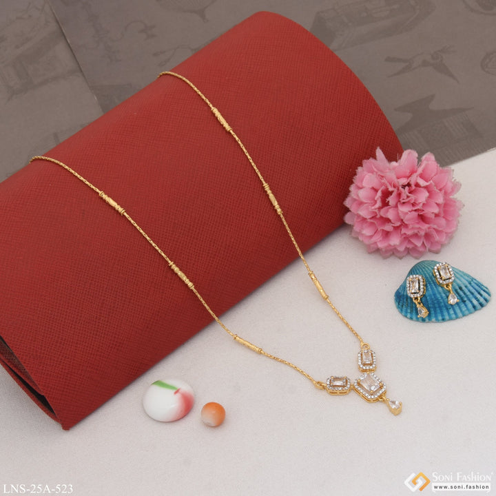 Dress to impress with the 1 Gram Gold Plated Necklace Set for Lady. The textured design, adorned with a shining diamond, adds a touch of elegance to any attire. Made with...