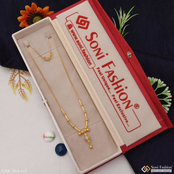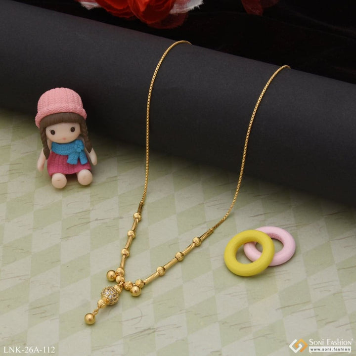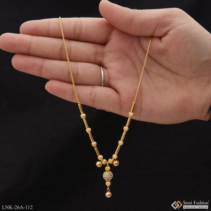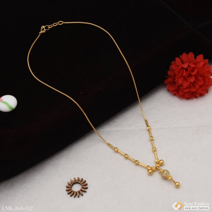 Experience elegance with our 1 Gram Gold Plated Necklace. Our latest trend design features a graceful brass necklace with a touch of diamond, perfect for any occasion. Upgrade your style with this beautifully crafted necklace.