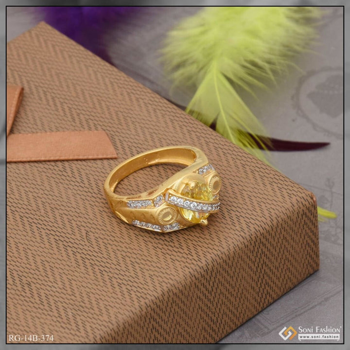 1 Gram Gold Plated Yellow Stone with Diamond Funky Design Ring for Men - Style B374