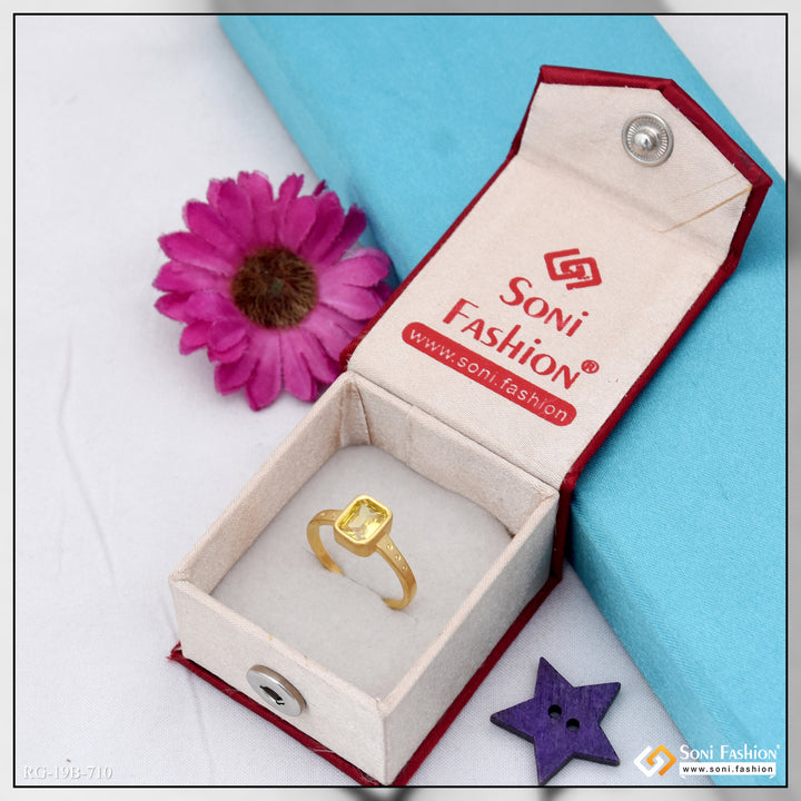 1 Gram Gold Plated Yellow Stone Ring for Men - Style B710