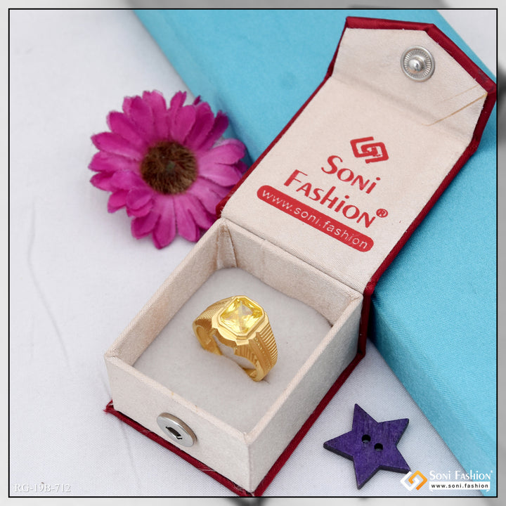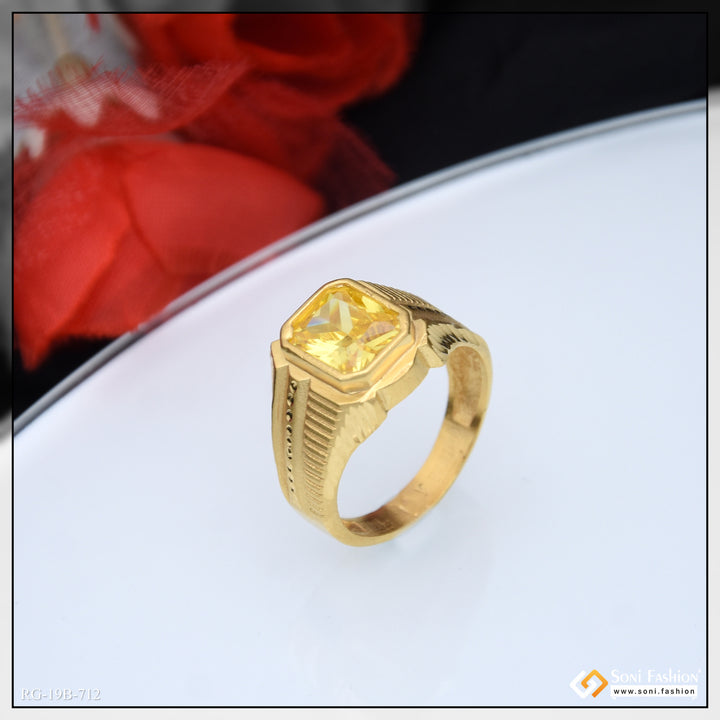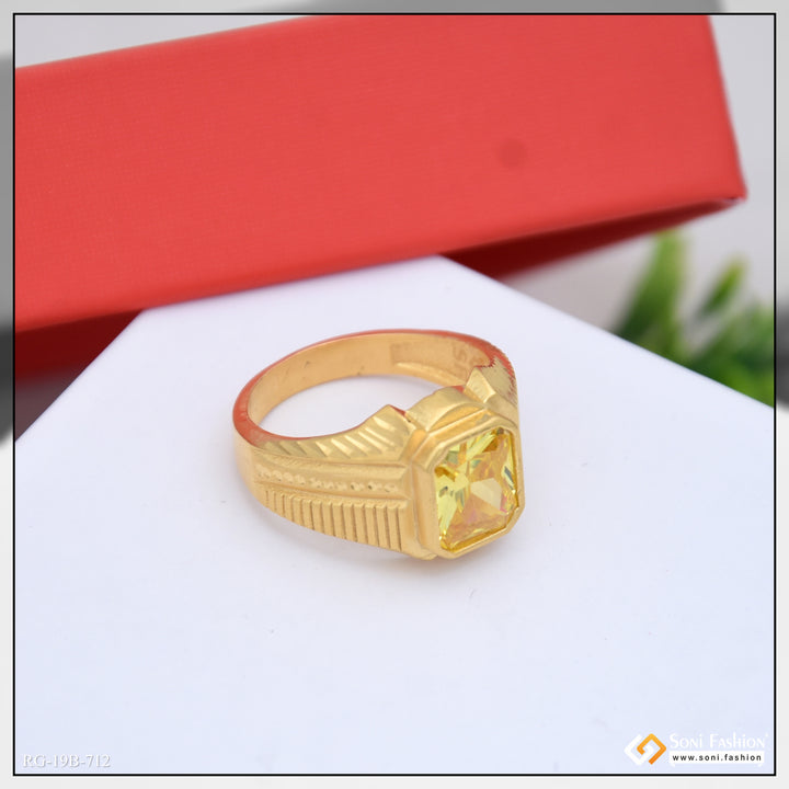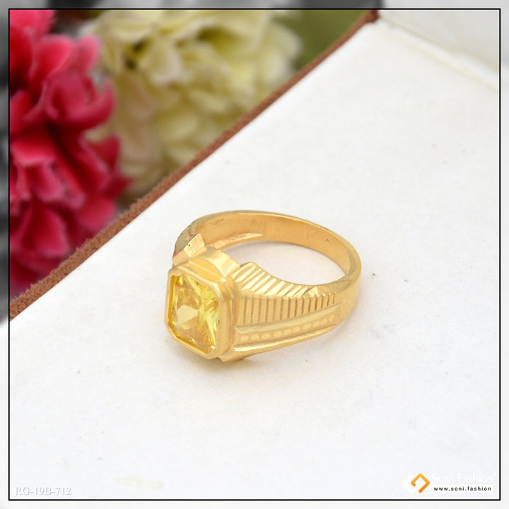 1 Gram Gold Plated Yellow Stone Ring for Men - Style B712