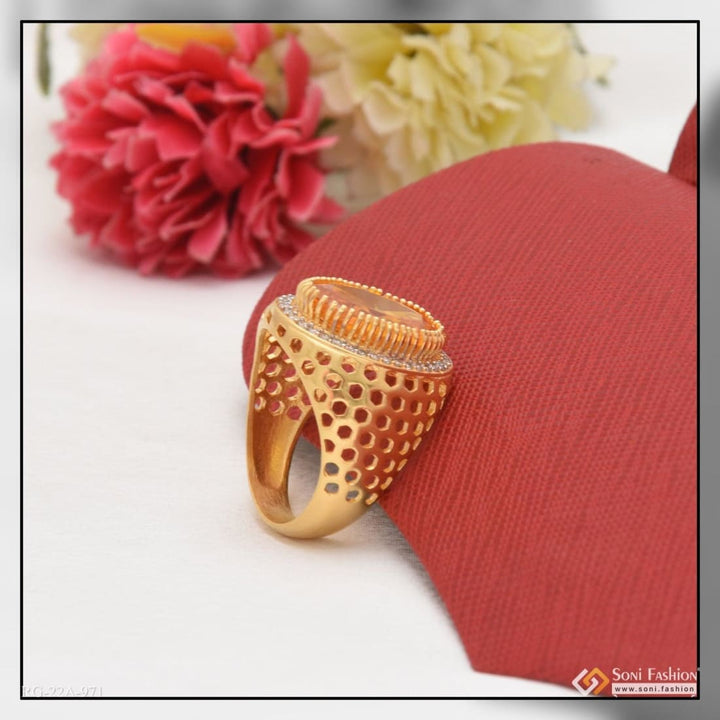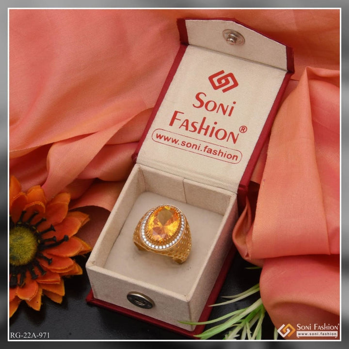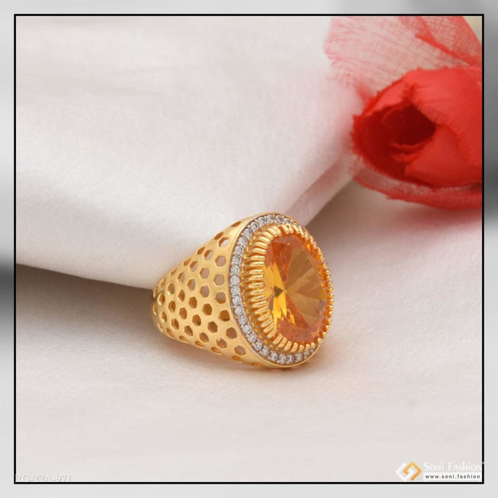 1 Gram Gold Plated Yellow Stone with Diamond Glamorous Design Ring - Style A971