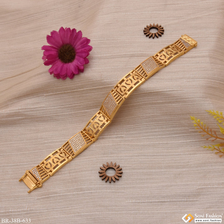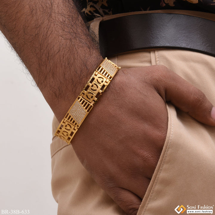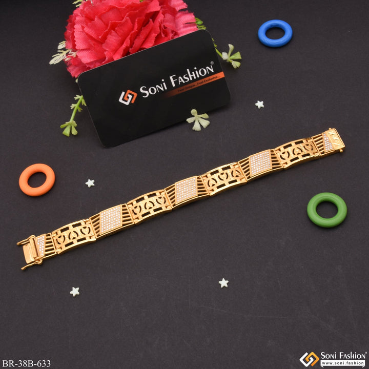 1 Gram Gold - Square With Diamond Delicate Design Gold Plated Bracelet - Style B633