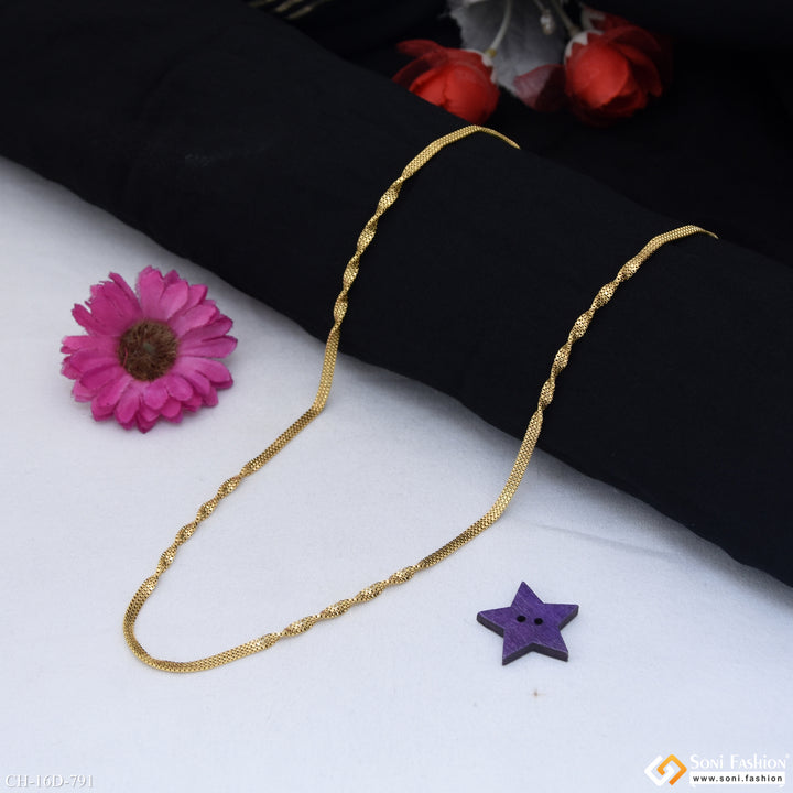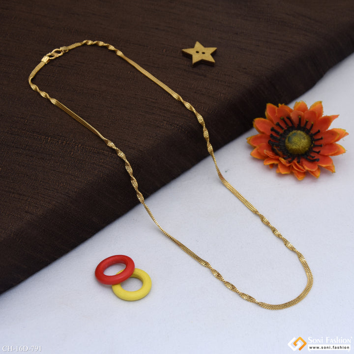 Elevate your style with this 18k gold plated twisted design chain for men. Crafted from durable brass with a filigree pattern, this 22-inch royal golden chain offers a shining, elegant look perfect for any occasion. Its unique twisted design adds a touch of sophistication, making it a versatile accessory for daily wear or special events.
