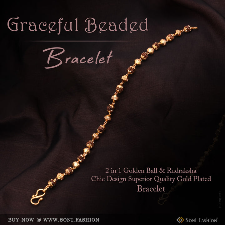 2 In 1 Golden Ball & Rudraksha Chic Design Superior Quality Gold Plated Bracelet - Style B021