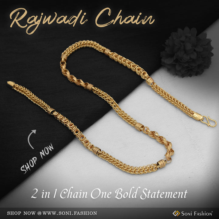 2 In 1 Best Quality Gold Plated Rajwadi Chain for Men - Style D851