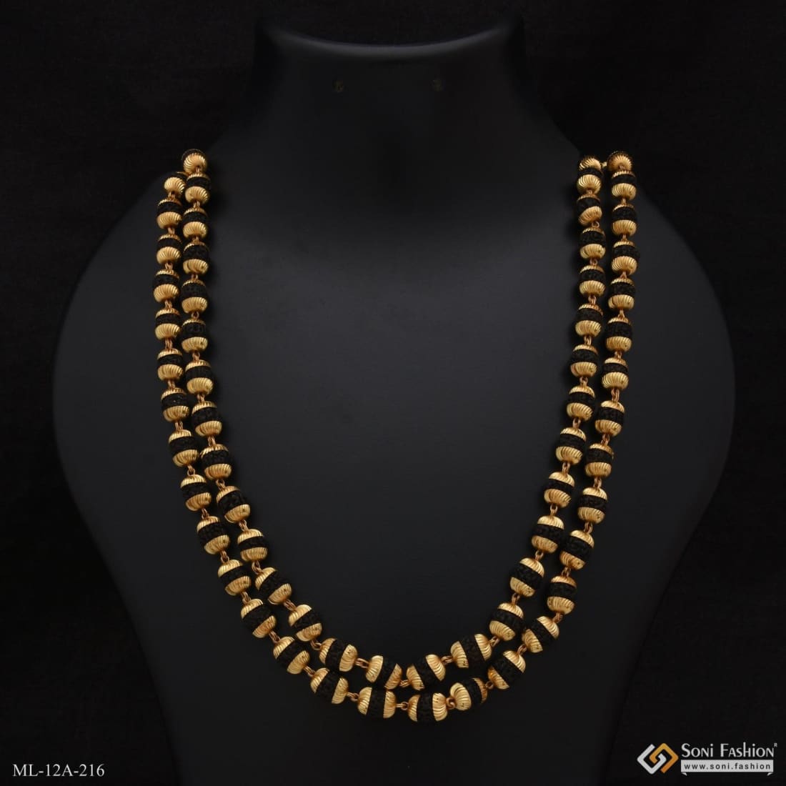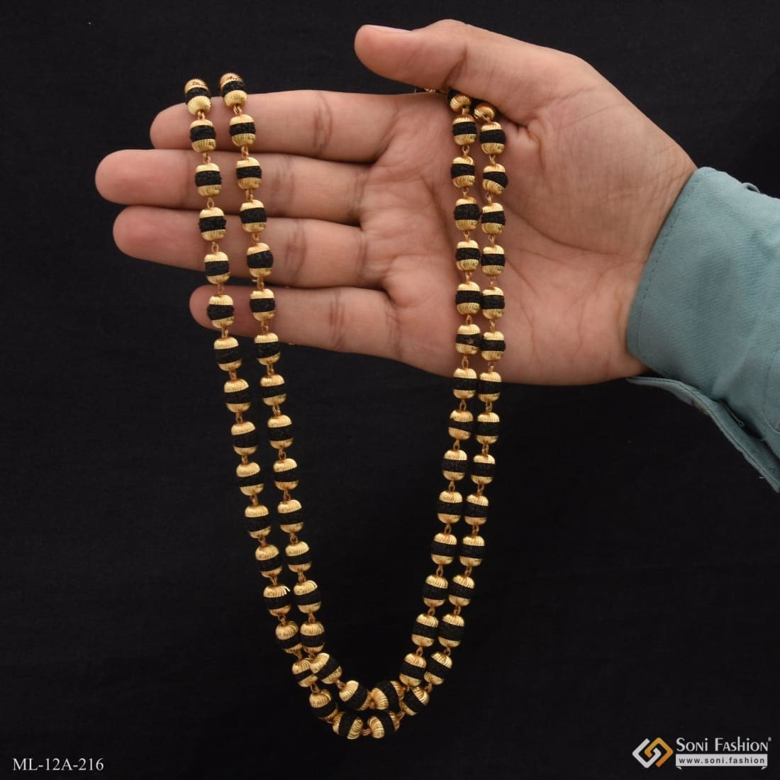 2 Line Lovely Design High-Quality Gold Plated Rudraksha Mala for Men - Style A216