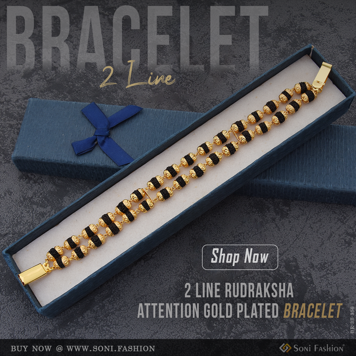 2 Line Rudraksha Attention-getting Design Gold Plated Bracelet - Style B356
