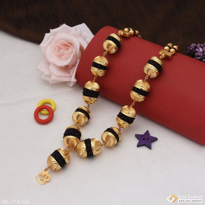 2 Line Rudraksha Mala Premium-Grade Quality Gold Plated for Men - Style A226