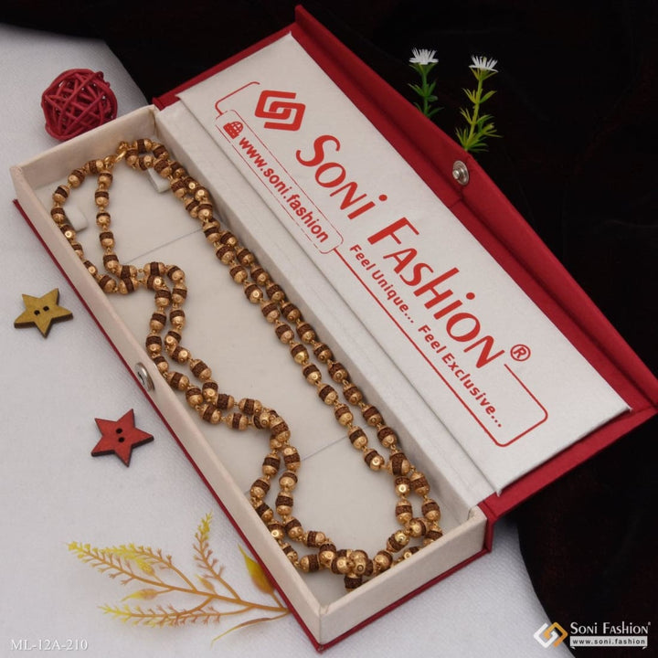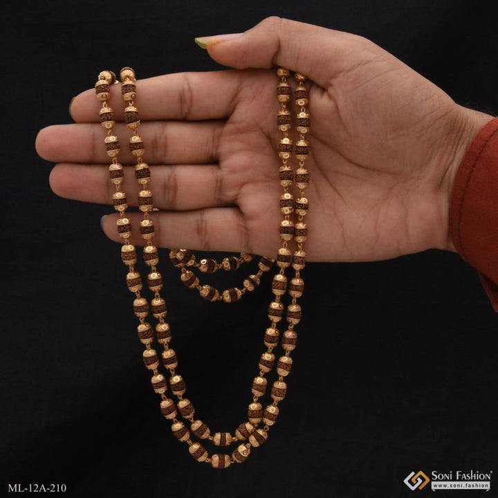 2 Line Gold Plated Rudraksha Mala for Men - Style A210