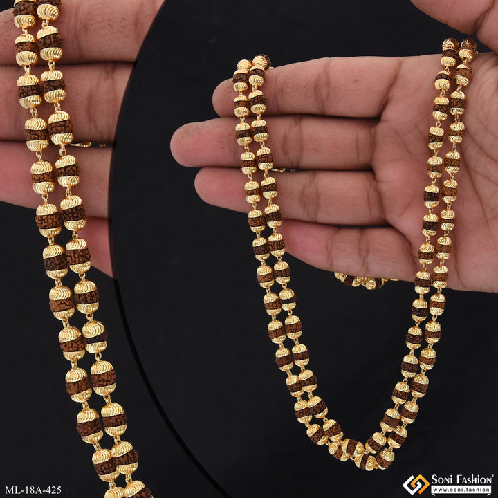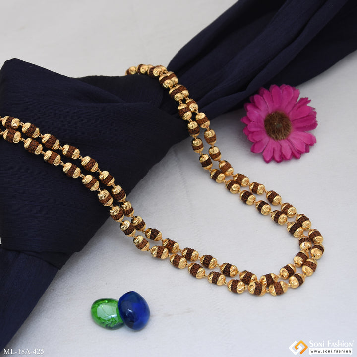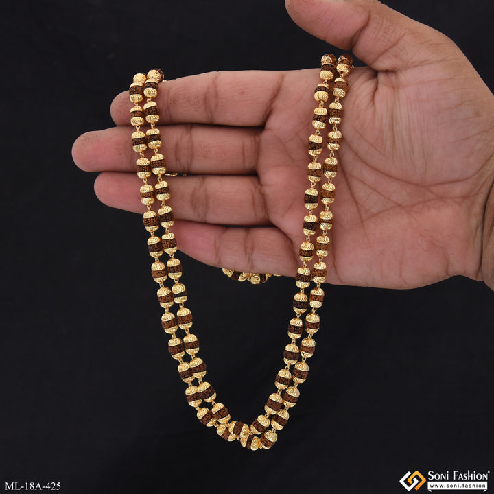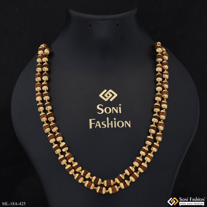 2 Line Trending Design Gold Plated Rudraksha Mala for Men - Style A425