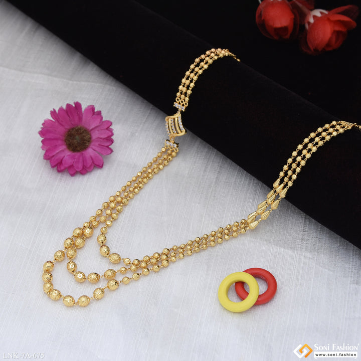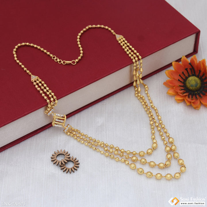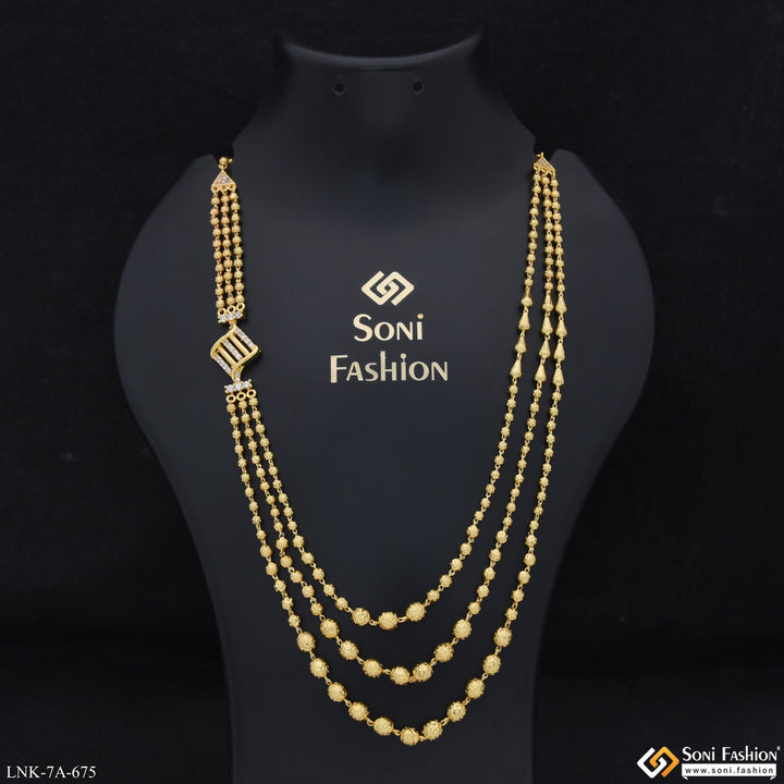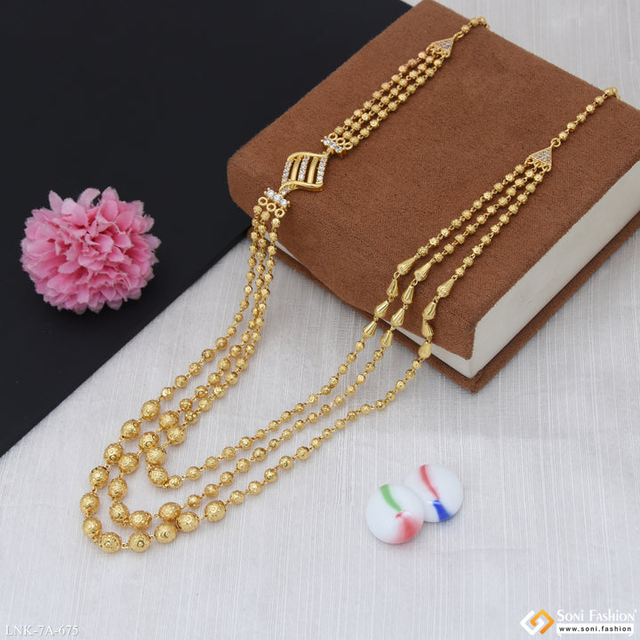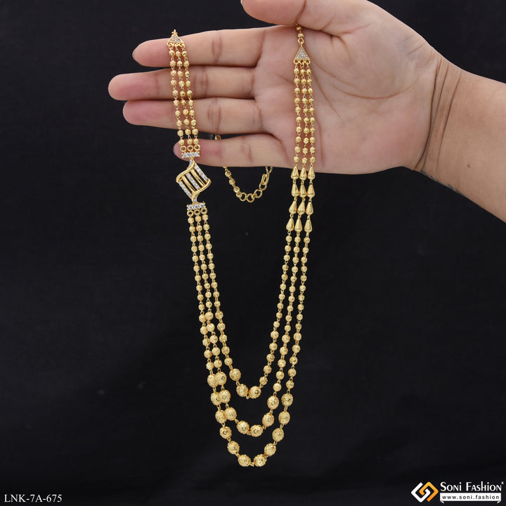 3 Line Fashionable Gold Plated Brass Beaded Mala for Women - Style A675