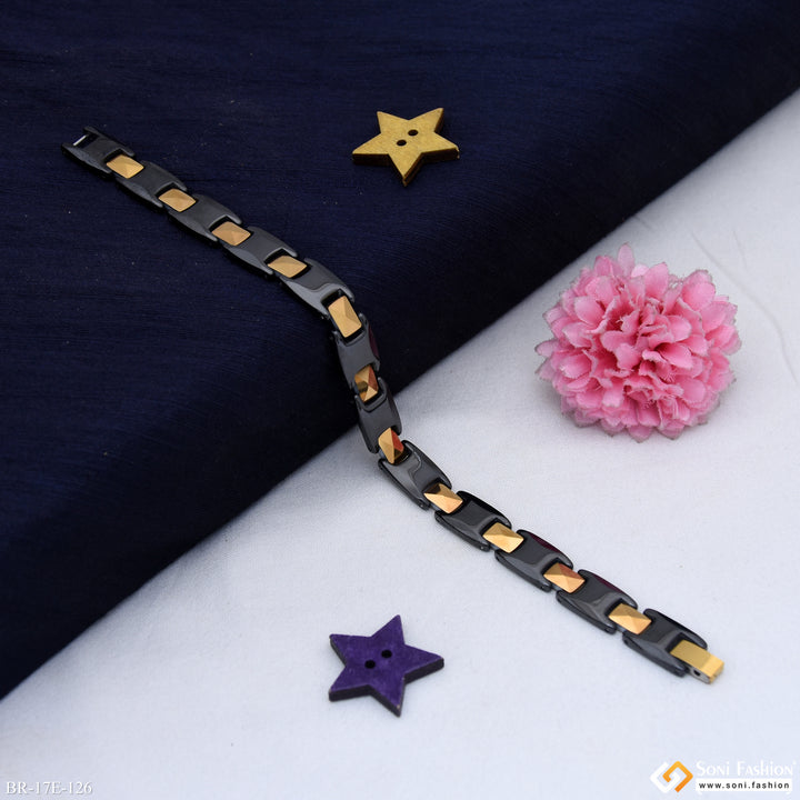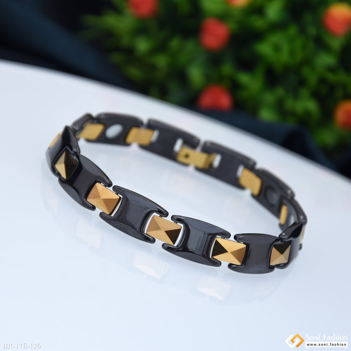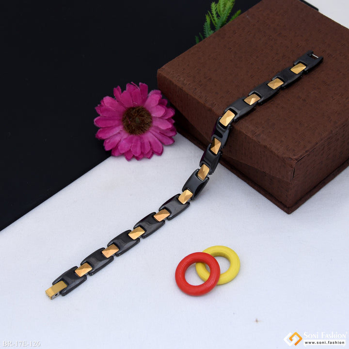 Artisanal Design Black & Golden Color Ceramic Bracelet for Men - Style E126