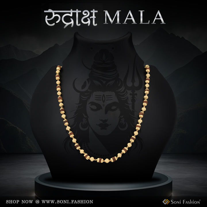 Attention-Getting Design Gold Plated Rudraksha Mala for Men - Style A239