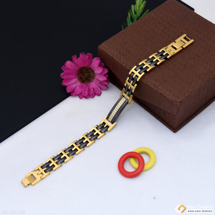 Awesome Design Black & Golden Color Ceramic Bracelet for Men - Style E129