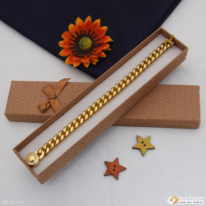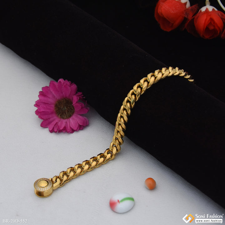 Expertly crafted from high-quality stainless steel, this Shining Golden Bracelet is the perfect blend of style and durability. With its sleek, plain design and hip hop influences, this Bracelet-Regular is the...