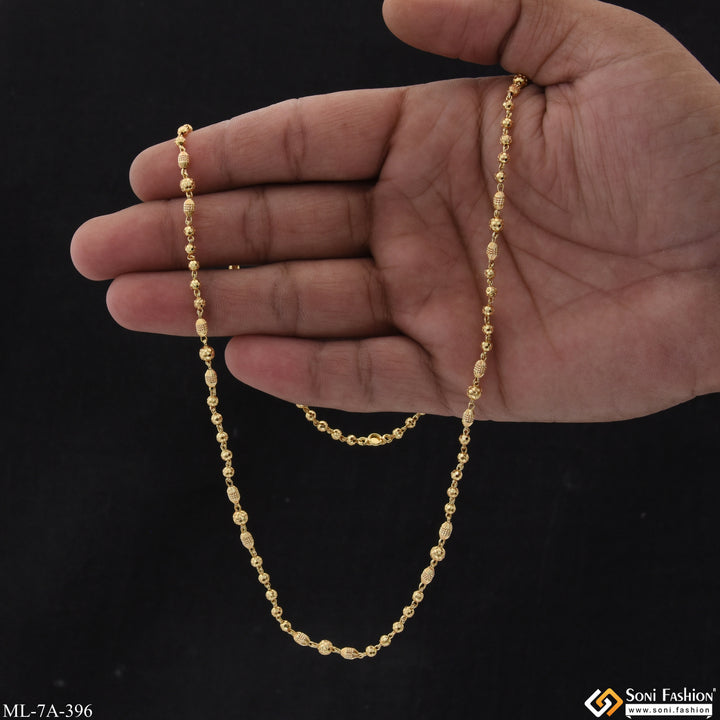 Add a touch of elegance to your outfit with our Beaded Gold Plated Mala for Men. The shining brass beads, coated with royal hid_reg_plating, create a durable and stylish piece perfect for any occasion. With its sturdy brass construction, this golden mala is a high-quality accessory that will elevate your style.