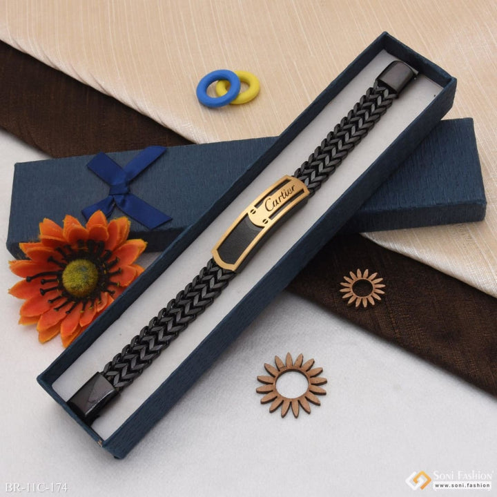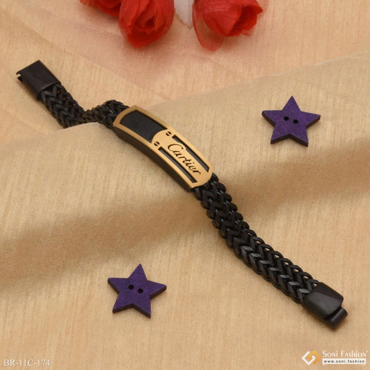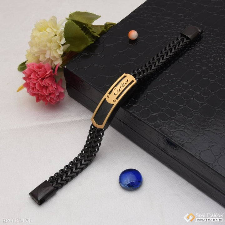 Best Quality Elegant Design Black & Golden Color Bracelet for Men - Style C174