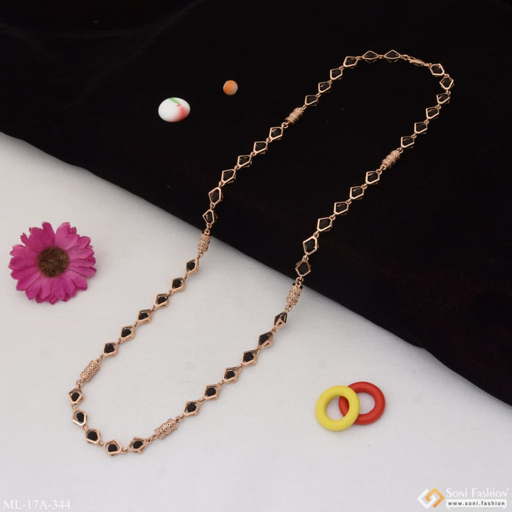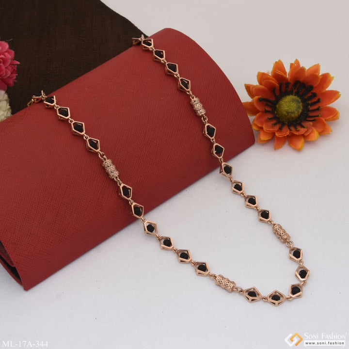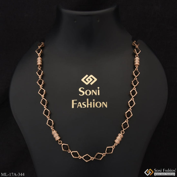 This handcrafted Rudraksha Mala in royal rose gold color is a stylish and religious accessory for men. Made with high-quality brass and adorned with diamonds, it features a hidden rhodium plating...
