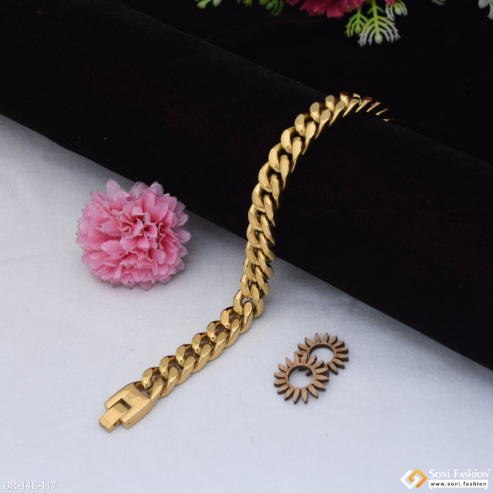 Elevate your style with this premium stainless steel Cuban link bracelet, crafted for the modern man who values quality and edge. Featuring a lustrous golden plating that catches the light beautifully, this hip-hop inspired piece delivers authentic street style with lasting durability. The robust stainless steel construction ensures resistance to tarnishing and daily wear, while the classic Cuban link design offers timeless appeal.