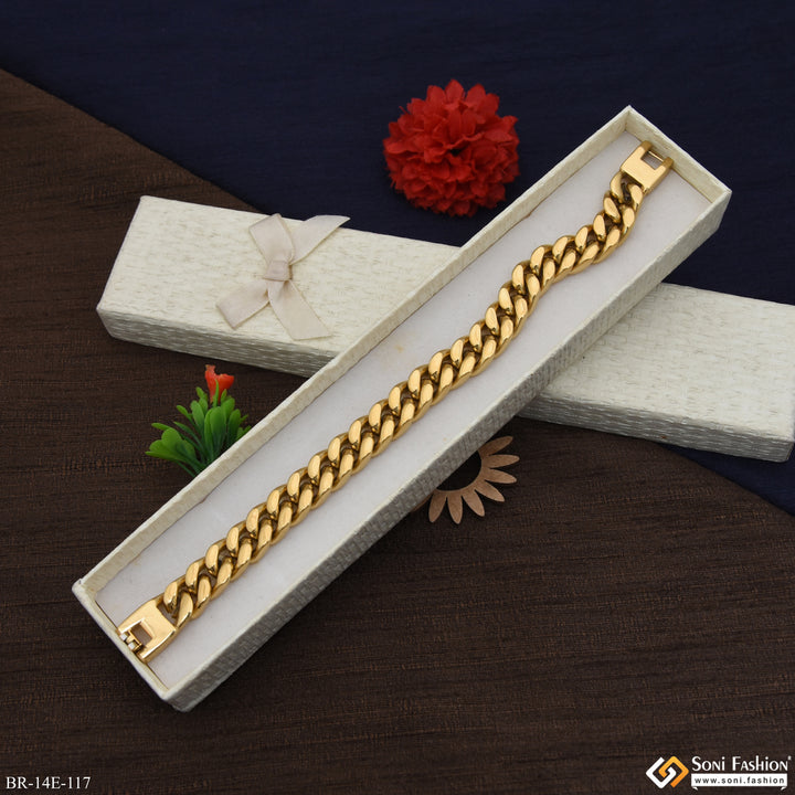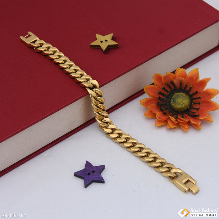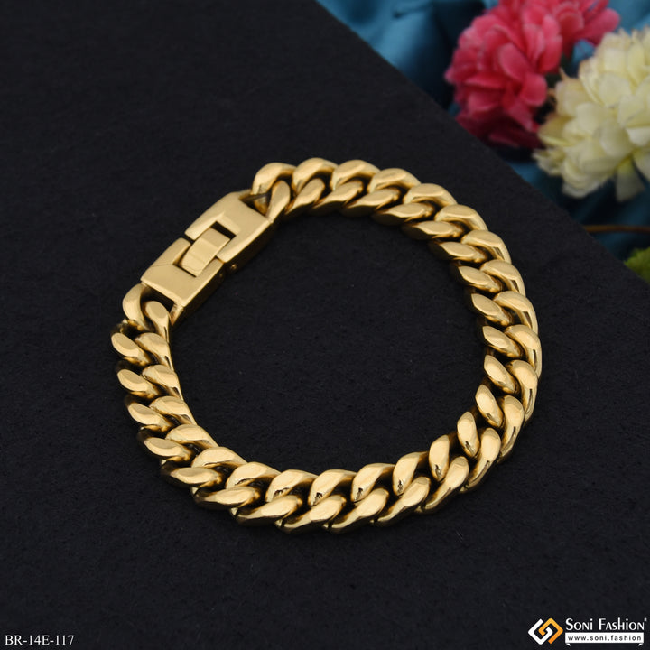 Elevate your style with this premium stainless steel Cuban link bracelet, crafted for the modern man who values quality and edge. Featuring a lustrous golden plating that catches the light beautifully,...