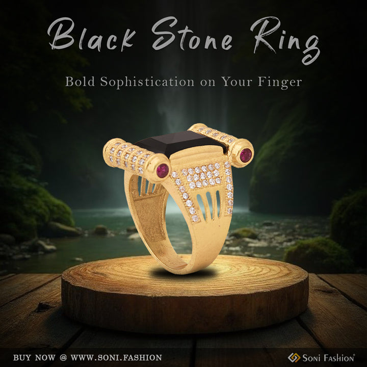Black Stone with Diamond Sophisticated Design Gold Plated Ring for Men - Style B215