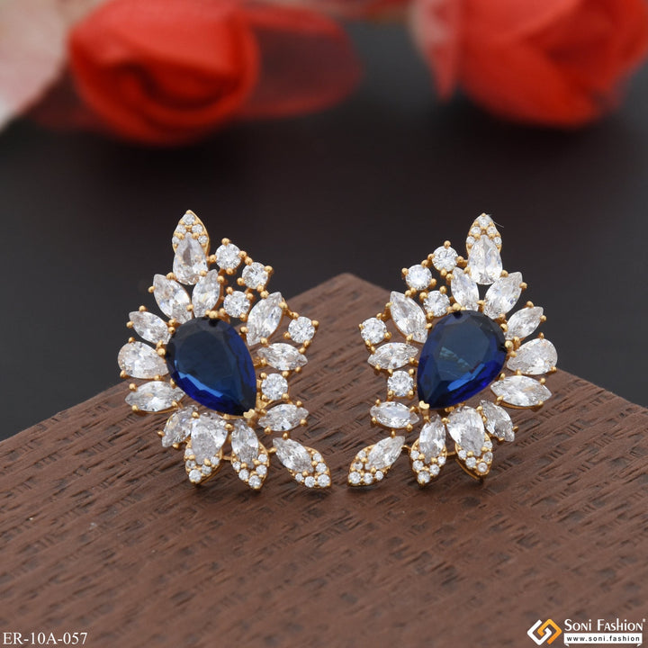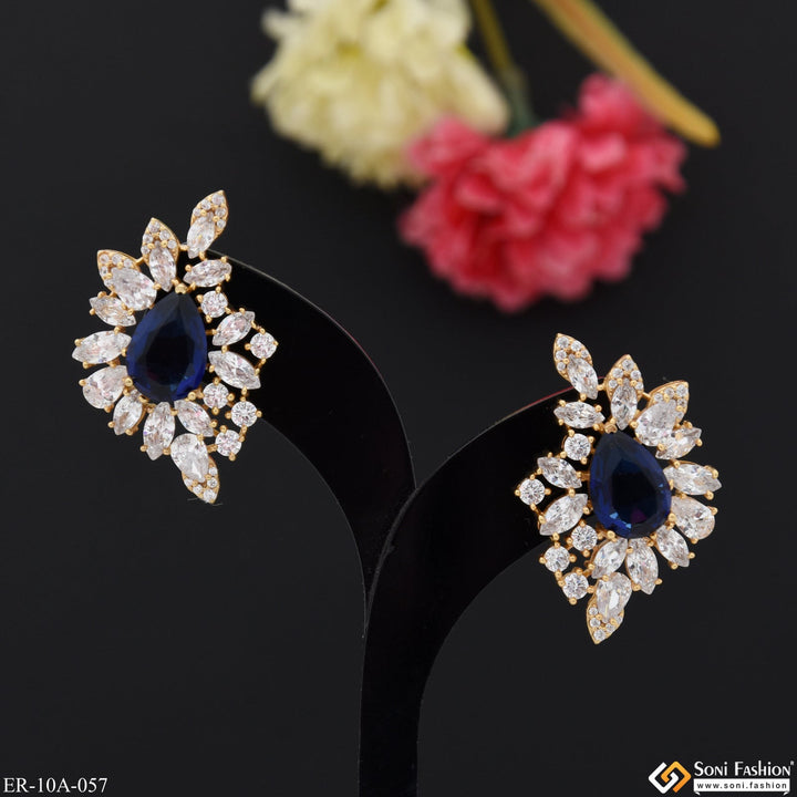 Blue Stone with Diamond Unique Design Gold Plated Earrings for Lady - Style A057