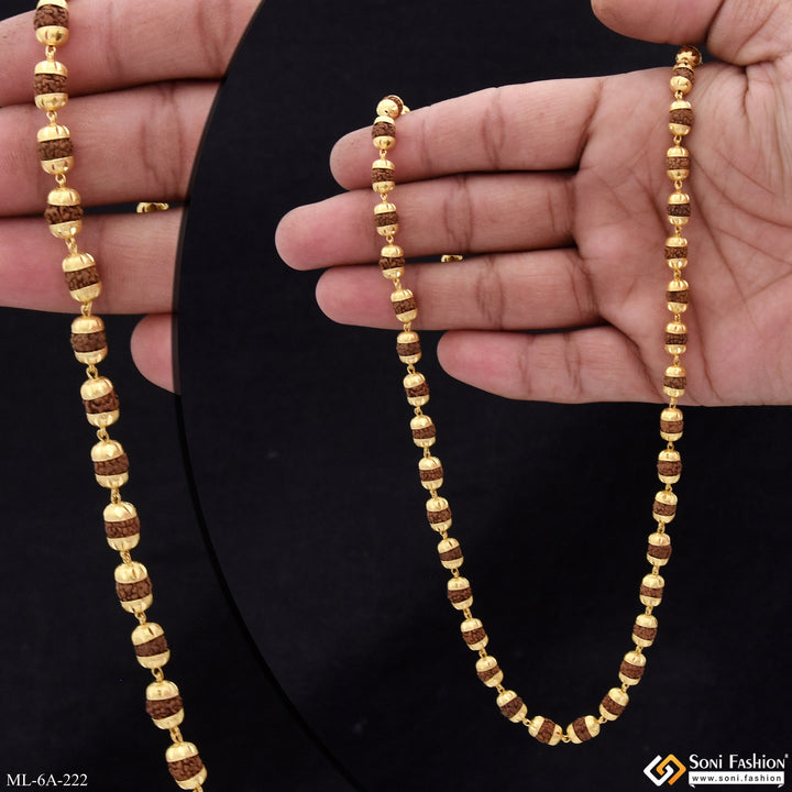 Elevate your style with our Charming Design Golden Mala for Men. Vintage and Rajwadi inspired, this premium-grade quality Mala features Rudraksha beads for a religious touch. Its textured design and Hid_Reg_Plating...