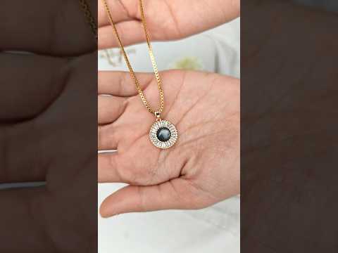 This shining and royal gold plated chain pendant is the perfect accessory for any fashion-forward lady. Its classic yet trendy design features a round blue diamond on a brass necklace, with...
