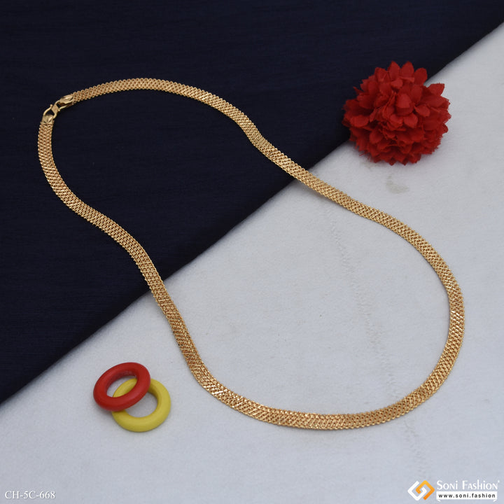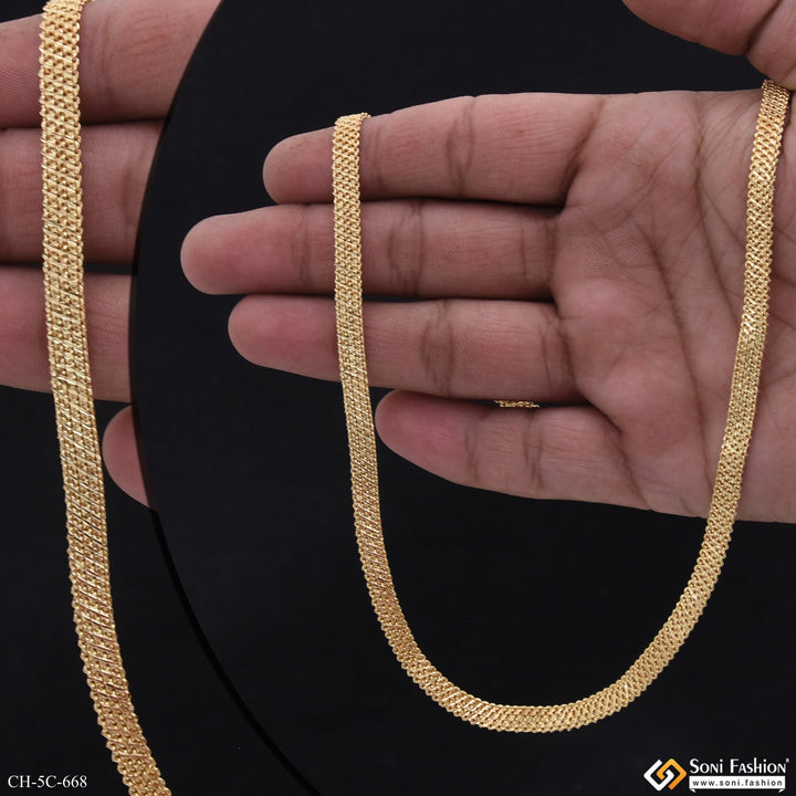Introducing Delicate Design's Best Quality Elegant Design Gold Plated Chain for Men, featuring the latest trending design. With its textured and shining finish, this popular and hip hop-style golden chain, made of brass, is guaranteed to turn heads. Step up your look today with Delicate Design.